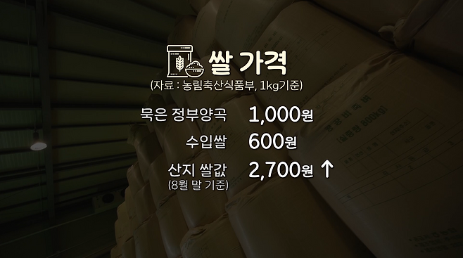 지난해 이상 기후로 실제 쓸 수 있는 밥쌀이 줄고 정부의 추가 격리 조치까지 더해져 일반 쌀 가격은 크게 올랐습니다.
