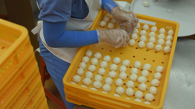 이 업체에선 여섯 가지의 ‘굳지 않는 떡’을 하루 18톤씩 생산합니다.