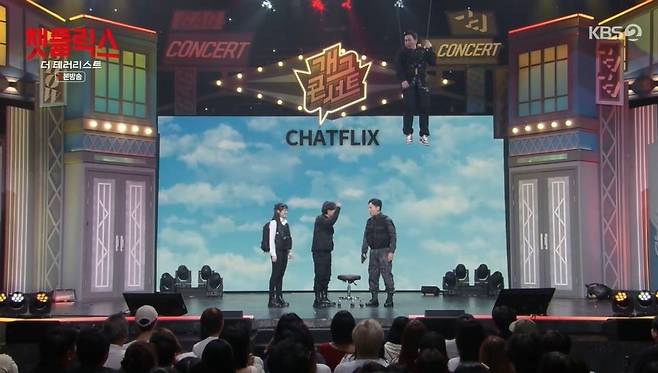 정범균이 '챗플릭스' 내내 공중에서 계속 떠 있어 눈길을 끌었다.