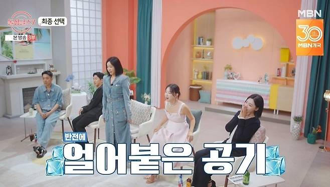 이동건, 김명은의 새벽 대화를 처음 들은 조아름은 충격을 받고 자리를 떴다. MC들은 "어떡해"라며 "자기보다 먼저 얘기한 걸 알게 된 거다"라고 입을 모았다. 조아름은 장수하에게 "난 너무 벙찌는 게 뭐냐면 둘이 대화한 걸 몰랐다. 최종 선택 12시간 전인데, 12시간 남기고 저런 식으로 행동하는 게 (이해가 안 간다)"라고 토로했다.