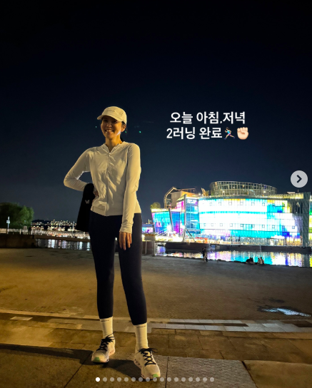 사진 속 박지윤은 운동복을 입고 야간 러닝을 한 모습이 담겼다. 그는 카메라를 향해 활짝 웃어보였고 옆에는 ‘오늘 아침, 저녁 2러닝 완료’라고 적혀 있었다.