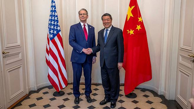 보도에 따르면 스콧 베선트 재무장관, 제이미슨 그리어 미국무역대표부 대표가 이끄는 미국 대표단과 허리펑 부총리가 이끄는 중국 대표단은 현지시간 14일 마드리드에 위치한 외교부 청사에서 회동했습니다.