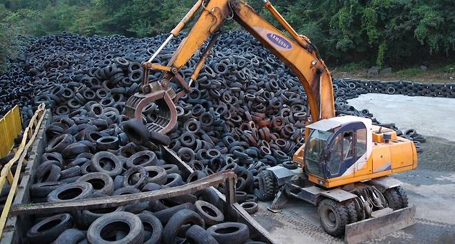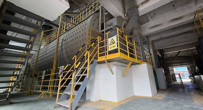 | ▲ 한국의 쌍용시멘트 영월공장에 폐타이어를 시멘트 소성로에 투입하고 있다. 그러나 중국의 시멘트 공장에선 이런 풍경을 보지 못했다. |