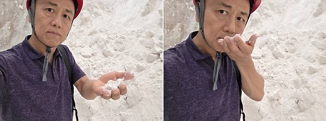 | ▲ 시멘트 가루에 물을 부었더니 색 차이가 더 선명해졌다. |