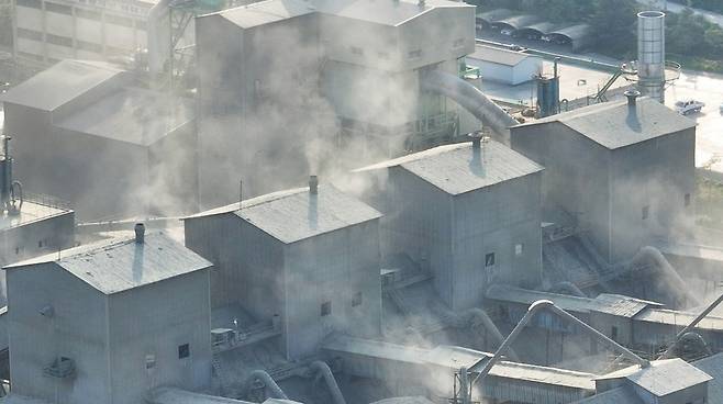 | ▲ 시멘트 분진을 당연하게 여기던 한국 시멘트 공장들은 오늘도 공장 곳곳에서 시멘트 분진을 마치 연기처럼 뿜어내고 있다. |