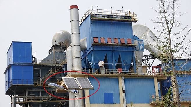 | ▲ 중국 시멘트 공장 안에 태양광 가로등이다. 시멘트가 덕지덕지 붙어 있는 한국 시멘트 공장과 너무 차이가 난다. |