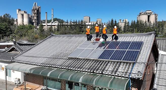 | ▲ 한국의 시멘트 공장의 분진으로 뒤덮인 태양광. 이렇게 청소해줘야 한다. |