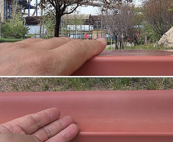 | ▲ 건조 후에도 콘크리트의 색 차이는 여전했다. |