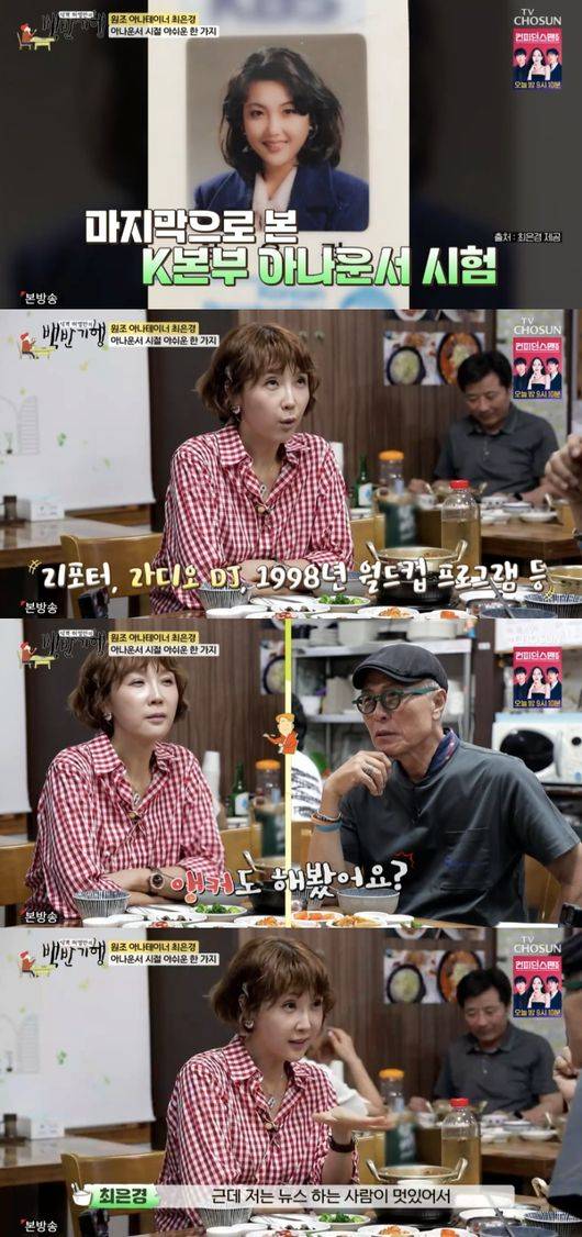 14일 방송된 TV조선 '식객 허영만의 백반기행'(이하 '백반기행')에서는 아나운서 출신 방송인 최은경이 등장한 가운데 아나운서 시절을 떠올렸다.