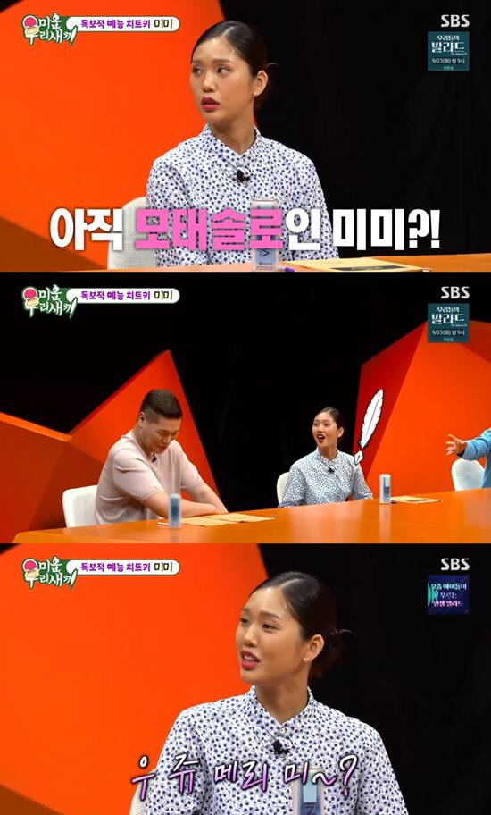 14일 방송에서 미미는 스페셜 MC로 출연했다. 그는 스스로를 모태솔로라 밝히며 연애 경험담을 공개했다.