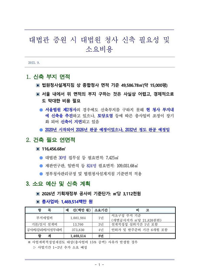 - 서초동 땅 구입해서 법관 근무 공간 늘려야 한다는 주장