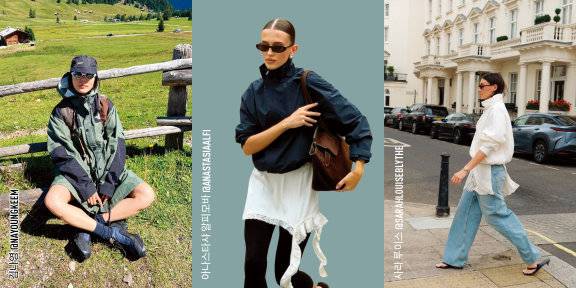 셀럽들 역시 저마다의 방식으로 윈드브레이커를 즐기고 있다. 요즘 떠오르는 핀터레스트 걸, 마리나 졸로보바, 사라 루이스, 아나스타샤 알피모바는 스포티한 점퍼에 슬립 드레스나 깊게 파인 슬릿 스커트를 매치해 평범한 운동복도 충분히 드레시할 수 있음을 입증했다. 디지털 크리에이터 에밀리 신디브는 재킷과 동일한 컬러 셋업으로 윈드브레이커를 미니멀하게 풀어냈다. 불필요한 장식을 덜어낸 깔끔한 스타일은 오피스 룩으로도 손색이 없을 정도. 국내 셀럽들은 캐주얼한 무드로 윈드브레이커를 소화한다. 가수 겸 사업가 강민경은 윈드브레이커와 레깅스 쇼츠를 매치하고, 커다란 헤드폰을 착용해 '꾸안꾸’ 스타일을 완성했다. 방송인 김나영은 히프를 덮는 윈드브레이커를 원피스처럼 연출하고 여기에 스냅 백, 선글라스 같은 액세서리로 위트를 가미했다.윈드브레이커는 무한한 가능성을 품은, 이 시대 가장 유연한 옷이다. 런웨이와 일상의 경계를 가볍게 넘나들며 언제든 새로운 스타일 흐름을 만들어낼 준비가 되어 있다. 우리는 그저 변화의 바람을 온몸으로 느끼며 바람막이의 매력을 마음껏 즐기면 된다.