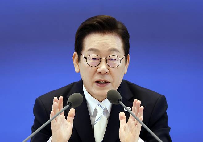 | ▲ 이재명 대통령이 11일 청와대 영빈관에서 열린 취임 100일 기자회견 '회복을 위한 100일, 미래를 위한 성장'에서 발언하고 있다. [대통령실통신사진기자단] |
