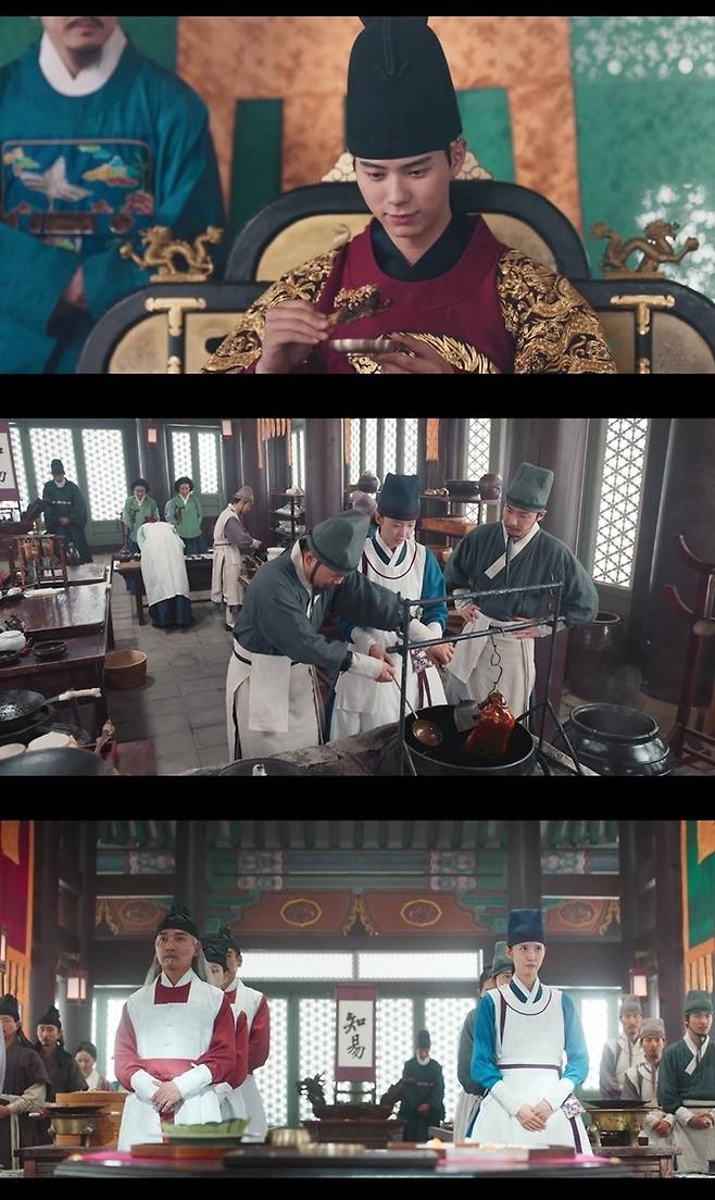 상황을 지켜보던 이헌은 두 숙수의 사정을 참작해 무승부를 선언하며 사태를 매듭지으면서도 세 번의 경합이 모조리 무승부로 끝날 경우 명나라의 승리로 하겠다는 어드밴티지를 걸어 대결의 긴장감을 높였다. 뿐만 아니라 두 번째 경합 전 수라간 숙수 맹만수(홍진기)를 불러들인 강목주(강한나)는 일부러 패배하라고 종용해 험난한 경합을 예감케 했다.
