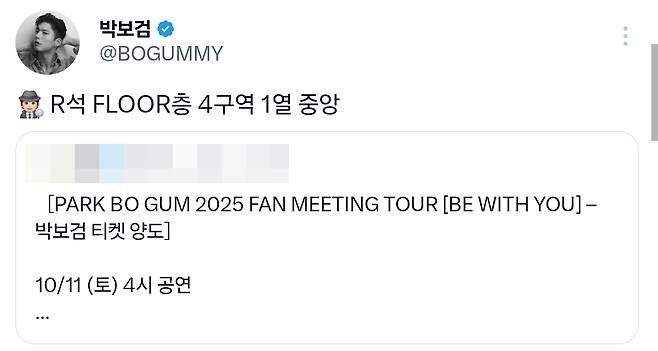 박보검은 오는 10월 11일 서울 성북동 고려대학교 화정체육관에서 국내 팬미팅 앙코르 공연 'PARK BO GUM 2025 FAN MEETING TOUR [BE WITH YOU] FINAL IN SEOUL'을 개최한다.