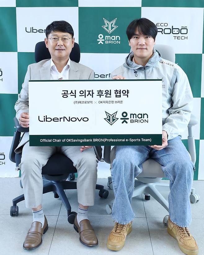 '리그 오브 레전드' 프로게임단인 OK저축은행 브리온이 에코로보텍의 프리미엄 체어 브랜드 '리버노보(LiberNovo)'와 공식 후원 계약을 체결했다고 15일 밝혔다.