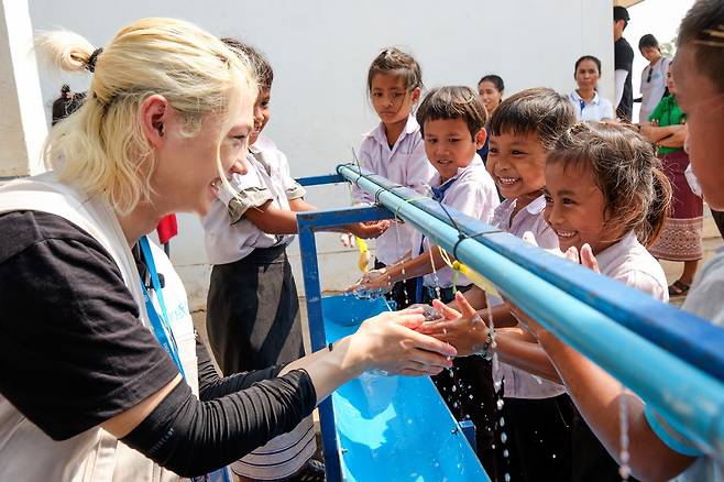 기부뿐 아니다. 필릭스는 지난해 2월 라오스를 직접 찾았다. 식수 지원 사업 현장에서 만난 어린이들에게 여러 방식으로 희망을 전달했다.