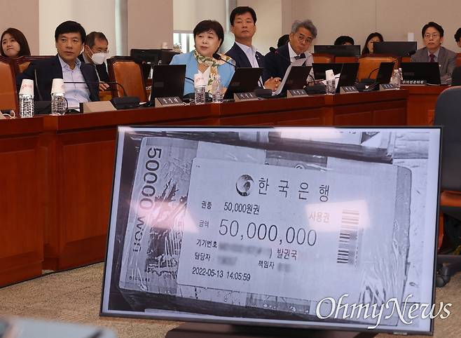 | ▲ 서영교 더불어민주당 의원이 5일 오전 국회 법제사법위원회 법안1심사소위에서 열린 검찰개혁 입법청문회에서 건진법사 전성배씨 자택 압수수색에서 발견된 현금 1억 6500만 원 중 관봉권 띠지 훼손·분실된 사안과 관련해 질의하고 있다. |