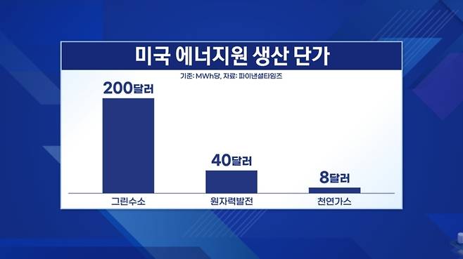 현재 그린수소로 전기를 생산하면 ㎿h당 200달러가 드는 것으로 알려지는데요.