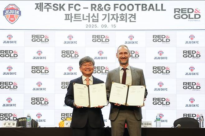제주SK는 15일 서울 마포구 스탠포드호텔코리아에서 'FC바이에른 뮌헨 & LAFC' 유소년 육성 네트워크를 위한 합작법인 '레드 앤드 골드(Red&Gold) 풋볼(이하 R&G)'과 파트너 조인을 진행했다.