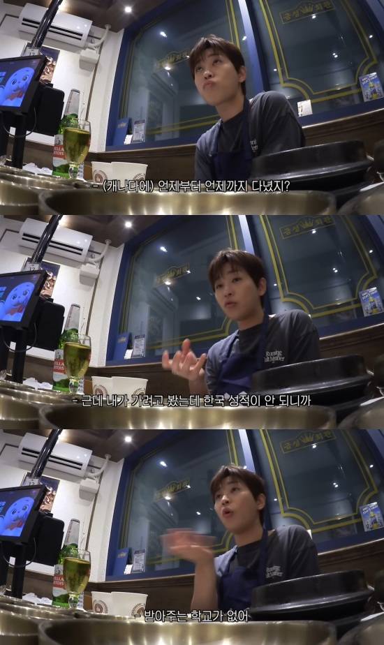 그는 "근데 한국 성적이 안 되다보니까 받아주는 학교가 없었다. 그나마 두 개가 있었는데, 하나는 벤쿠버 공고였고, 다른 하나는 거기서 퇴학당한 애들이 가는 공립학교였다"고 설명해 웃음을 줬다.
