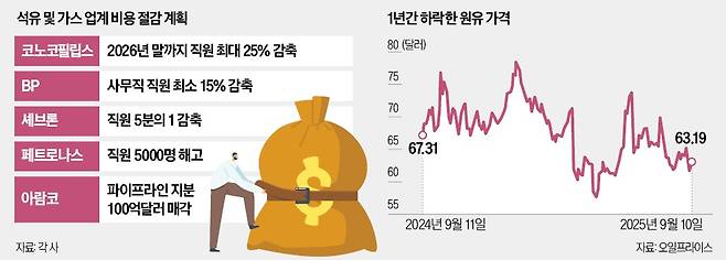 글로벌 석유·가스 기업들이 수익성 악화를 견디지 못하고 대규모 구조조정 등 비용 감축에 나서고 있다. 중국의 경기 둔화와 유럽 경기 침체 우려 속에서 석유 수요 증가세가 기대에 미치지 못하고 있어서다.