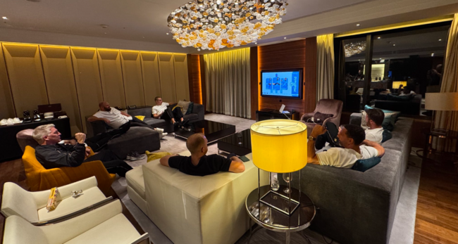 14일 서울월드컵경기장에서 열린 ‘2025 아이콘 매치’를 소화한 맨유 레전드들. 경기가 끝난 뒤 한 방에 모여 ‘쿠팡 플레이’ 중계를 통해 맨체스터 더비를 시청했다. 리오 퍼디난드는 개인 SNS를 통해 “맨체스터 더비 시작한다”는 문구와 함께 바스티안 슈바인슈타이거, 마이클 캐릭, 웨인 루니를 태그했다.