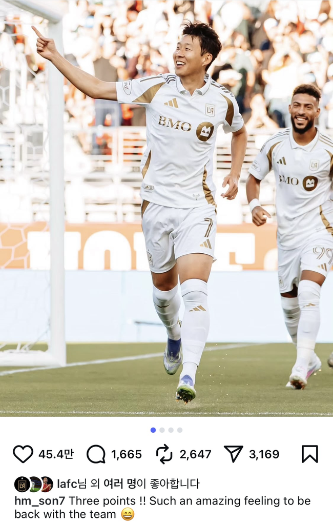 손흥민은 경기 직후 개인 SNS를 통해 "승점 3점!! 소속팀에 돌아오니 정말 놀랍고 행복한 기분이다"라며 골 세리머니를 펼치는 사진, LAFC 선수단과 함께 찍은 사진을 게재했다.