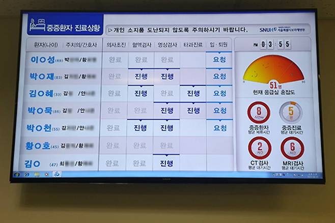 | ▲ 이경미 디자이너의 '병원 경험 서비스 디자인' 아이디어는 국내 대형 병원에 모두 적용됐다. 사진은 서울보라매병원의 응급실 진료상황 화면. |