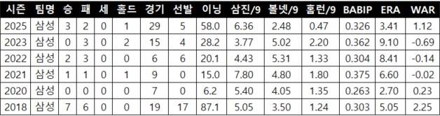 | ▲ 삼성 양창섭의 주요 투구기록(출처: 야구기록실 kbreport) |