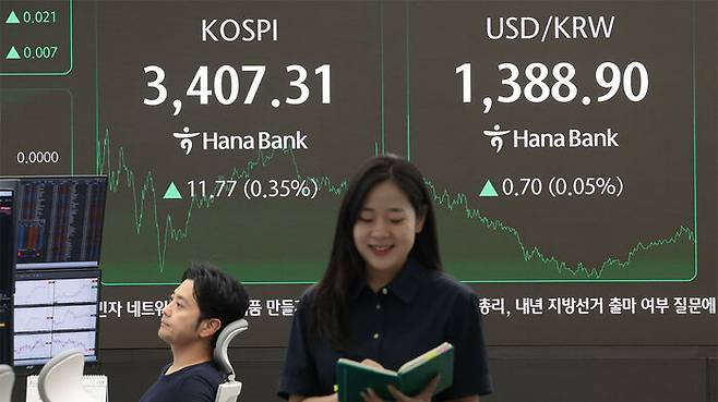 ▲ 15일 서울 중구 하나은행 딜링룸 현황판에 코스피 지수 등이 표시되고 있다.