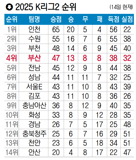 승점 47, 3위 부천과 승점 1점 차