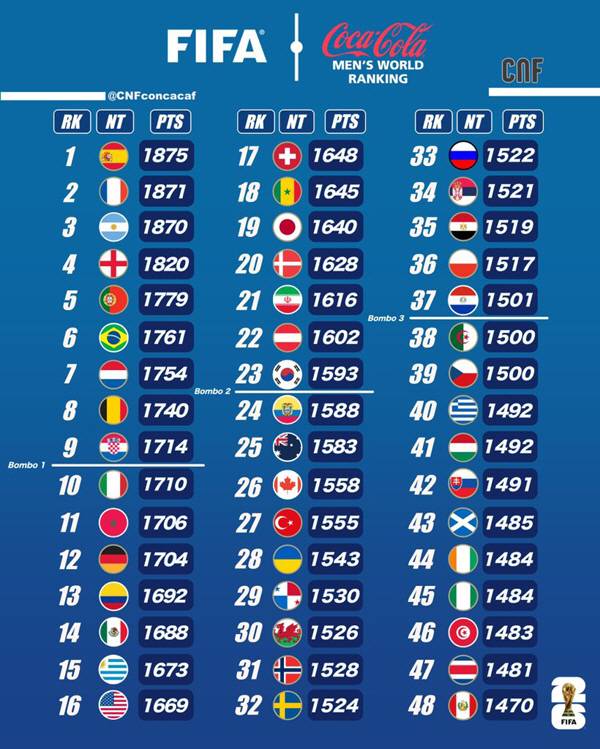 두 팀 모두 월드컵 포트2까진 아직 여유가 있다. 48개국이 참가하는 이번 월드컵은 순위별로 12팀씩 4개 포트로 나눠 12월 5일 조 추첨한다. 공동 개최국 3개국(미국, 멕시코, 캐나다)과 FIFA 랭킹 상위 9개팀이 포트1, 랭킹 10~21위가 포트2, 22~33위가 포트3, 34~45위가 포트4다. 한데 멕시코와 미국이 이번 랭킹에서 각각 포트2에 해당하는 14위와 16위에 랭크될 것으로 보여 23위까지 포트2에 포함될 가능성이 크다. 월드컵 유럽 예선에서 플레이오프로 떨어지는 팀이 무조건 포트4로 배정되는 것도 고려해야 한다.