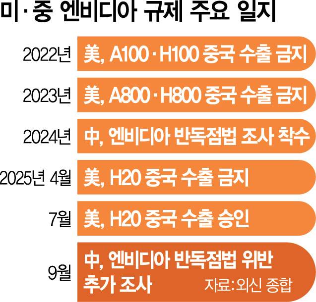 미중이 관세 등 무역 문제뿐만 아니라 도널드 트럼프 미국 대통령의 중국 방문 등 여러 현안을 두고 평행선을 달리고 있는 만큼 엔비디아 조사 결과를 협상 지렛대로 삼으려 한다는 것이다.