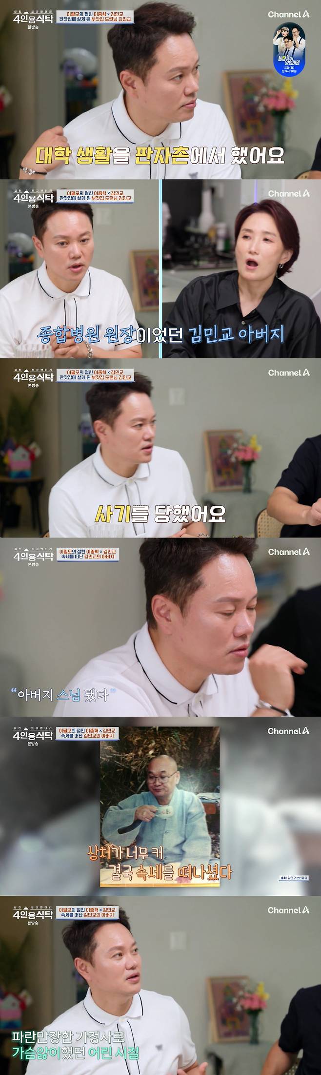 김민교 "병원장父, 사기 당하고 스님 돼..15년 안봤는데 췌장암 말기, 마지막 3년 함께했다"(4인용식탁)