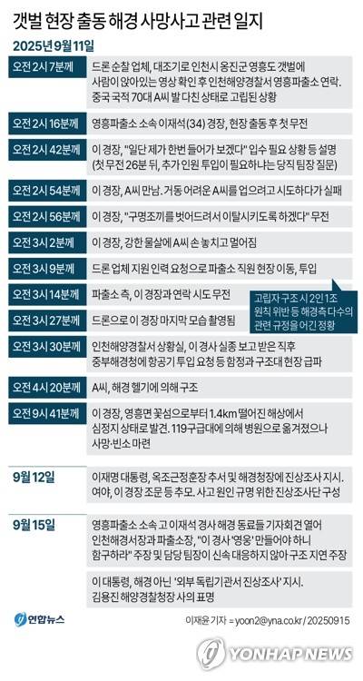 [그래픽] 갯벌 현장 출동 해경 사망사고 관련 일지