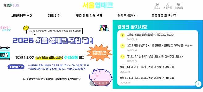 서울 영테크는 서울시가 만 19~39세 청년들의 금융자립을 돕기 위해 운영 중인 대표적인 청년 지원사업이다. 서울 거주 또는 활동 중인 청년이라면 누구나 무료로 1:1 재무상담과 금융교육을 제공한다. 하지만 특정 상품에 대한 투자는 권유하지 못 하게 돼 있다.