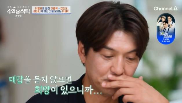 이를 들은 이종혁은 "가민히 있는것도 좋을수도 있겠다"고 조심스러운 생각을 전했다. 김민교 역시 "나도. 원래 반려자가 돌아가시는게 상처중에 제일 데미지가 크다고 하더라. 그런 경우 많이 봤다. 한분 돌아가시면 얼마 안 있어서 돌아가시니까"라고 우려를 표했다. 이필모는 "그럴것 같다"며 "그냥 쳐다만 봐도 자꾸 눈물 흘리시는데 그 얘기를 하면.."이라고 아버지가 받을 충격을 걱정했다. 그러자 박경림은 "잊으셨다기 보다 물었을때 확인이 돼서 확실해지는게 싫으실수도 있다는 생각이 들었다. 왜냐면 묻지 않고 듣지 않았을땐 희망이라는게 있으니까"라고 위로했다.
