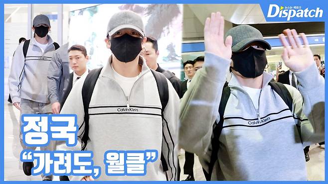 이날 정국은 그레이 톤으로 맞춰 입은 맨투맨과 데님 진으로 캐주얼하면서도 힙한 자태를 자랑했다.