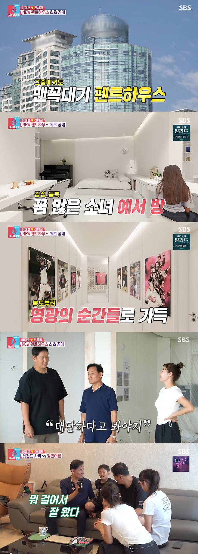 탁 트인 해운대뷰를 자랑하는 이대호 신혜정은 고급 펜트하우스 집을 리모델링 중이었던 것. 이대호는 "저는 제가 이런 집에 살 수 있을지, '조선의 4번타자라 불릴 수 있을지 몰랐다. 그래서 항상 감사하다"라 털어놓았다.