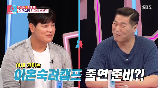또 김숙은 하원미가 지금도 헌팅포차를 간다는 사실에 대해 물었고, 추신수는 "'갔었다'는 표현이 맞을 것 같다"고 정정한 후 "앞뒤 생각을 안하는 것 같다"고 말해 웃음을 자아냈다. 그러면서 "아내한테 방송에 같이 출연하자고 한 다음에 '이혼숙려캠프'를 나가볼까"라고 장난을 치기도 했다.