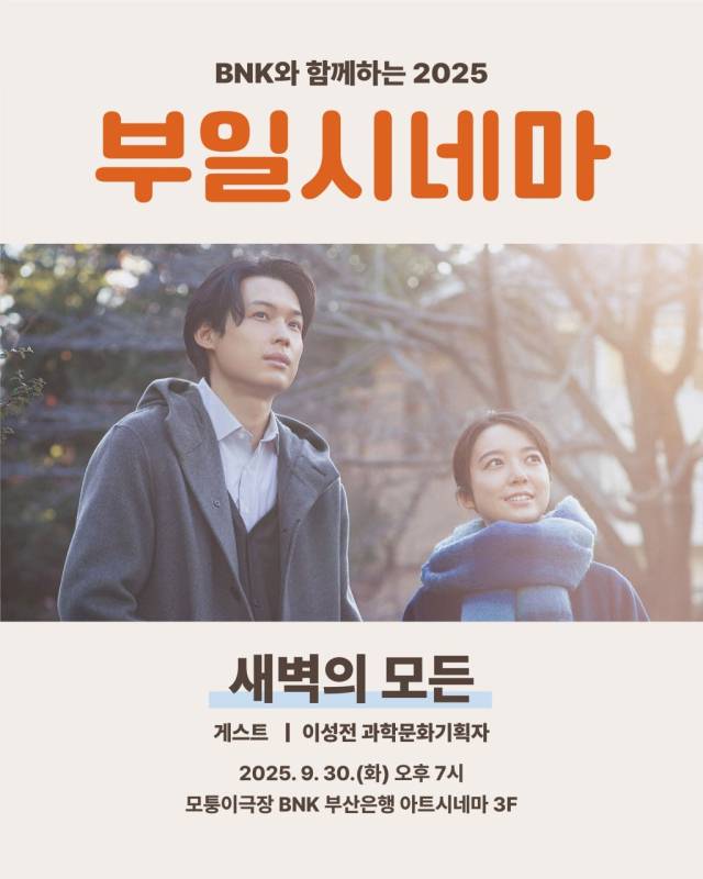 부일시네마는 전문가가 엄선한 숨은 명작을 매달 함께 관람하고 감상을 공유하는 행사다. 시즌2의 다섯 번째 작품은 미야케 쇼 감독의 ‘새벽의 모든’(2024)이다.
