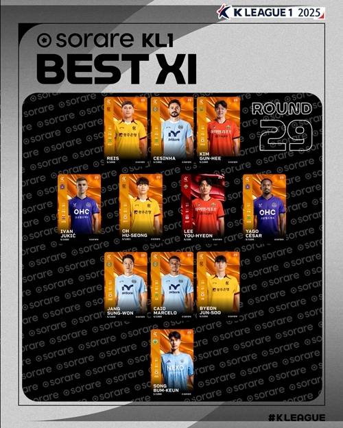 한국프로축구연맹은 9월 16일 '하나은행 K리그 2025' K리그1 29라운드와 K리그2 29라운드 MVP와 베스트 일레븐을 공개했다.
