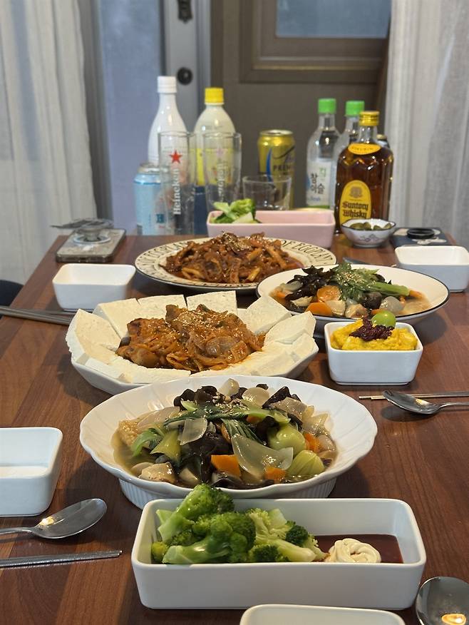 말 그대로 숟가락 하나씩 더 얹으면 밥도 한번에, 설거지도 한번에 할 수 있는 효율성까지 높은 사이가 되었다. 작은 식탁에 나란히 모여 앉아 먹는 밥은 하루의 피로를 녹여주고, 서로의 하루를 이어주었다.
