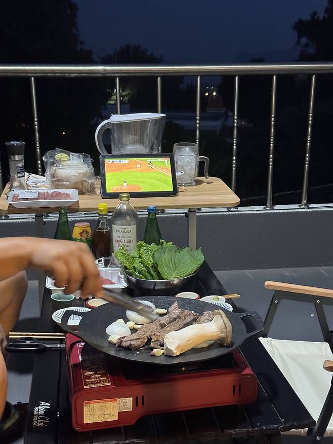 | ▲ 이웃사촌 저녁나눔 같은 야구팀을 응원하며 야외 테라스에서 같이 밥먹기 |