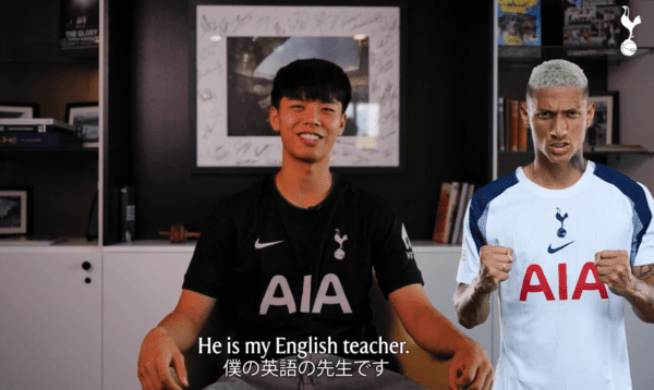 적응에는 히샬리송이 큰 힘이 되고 있는 모양이다. 영국 매체 '더 스퍼스 웹'은 15일 "타카이가 자신의 영어선생님을 공개했다"며 "그는 토트넘과 인터뷰에서 지금까지 경험을 즐겼으며, 건강히 복귀하는 데 집중하고 있다고 밝혔다"고 보도했다.