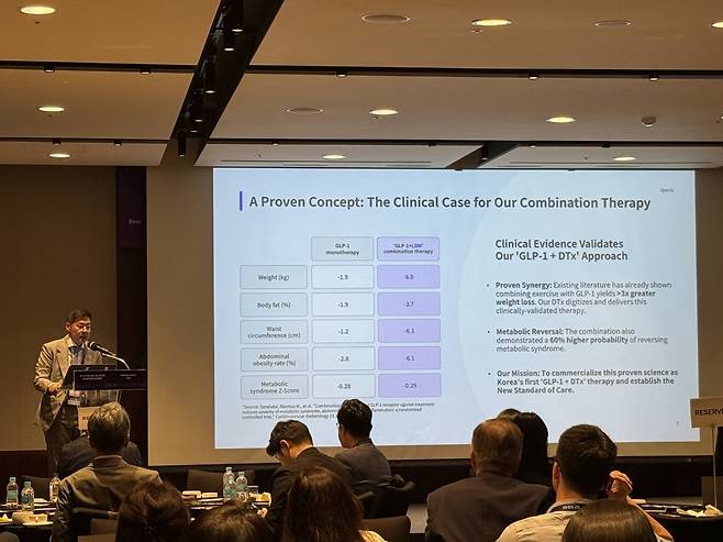 박수홍 엑스페릭스 최고AI책임자(CAIO)는 'AI 기반 개인 맞춤형 비만 치료: GLP-1과 디지털 치료제의 융합'을 주제로 발표하며 "GLP-1은 체중 감량에 효과적이지만 근육량 감소, 중도 이탈, 요요 현상 등 분명한 한계가 있다"고 말했다.