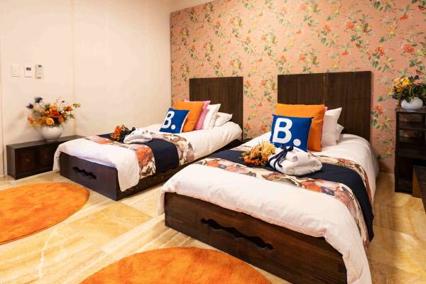 공간의 콘셉트는 '소프트 블룸 레이어'. 튤립과 야생화에서 영감을 얻은 코랄과 라일락, 살몬 핑크 톤이 한옥의 마루와 창호 위에 덧입혀졌다. 절제된 한옥의 선에는 디자이너 리하르트 휘텐의 가구가 들어와 현대적 실험성을 불어넣었고, 145년 역사를 지닌 프리미엄 인테리어 브랜드 아이핑거의 패브릭과 벽지는 대담한 패턴으로 공간에 리듬을 더했다. 일러스트레이터 코엔 폴의 그래픽 아트워크는 목재 구조와 기하학적 선을 결합해 한옥을 전혀 다른 시각으로 보여주는 데 한몫했다. 마지막으로 플로리스트의 꽃 장식까지 더해지자 객실은 어느새 작은 갤러리처럼 완성됐다.