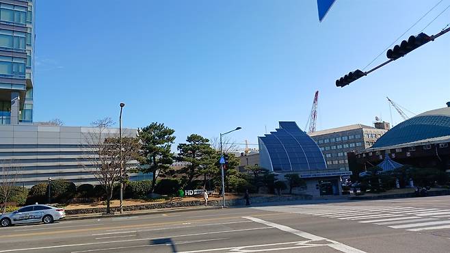 | ▲ 울산 동구에 있는 HD현대중공업 정문. 맞은편에 있는 현대호텔 바이 라한에서 APEC 정상회의 부대행사인 '세계 장애청소년 정보기술 대회'가 10월 28일부터 11월 1일까지 열린다. |