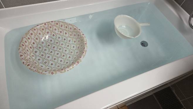 | ▲ 물부족을 대비하기 위해 물을 담은 욕조 |